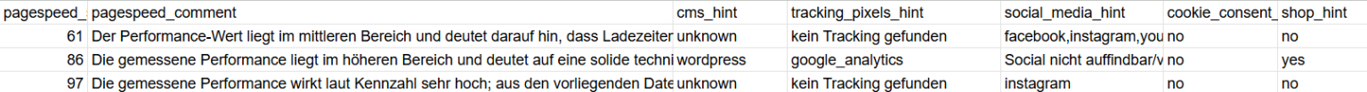 Hinweis: Der Ausschnitt aus einer Analyse ist von einem Testkunden mit den Modulen Webdesign/SEO/Ads . Sie ist hier in zwei Teile geteilt, damit sie lesbar bleibt.
